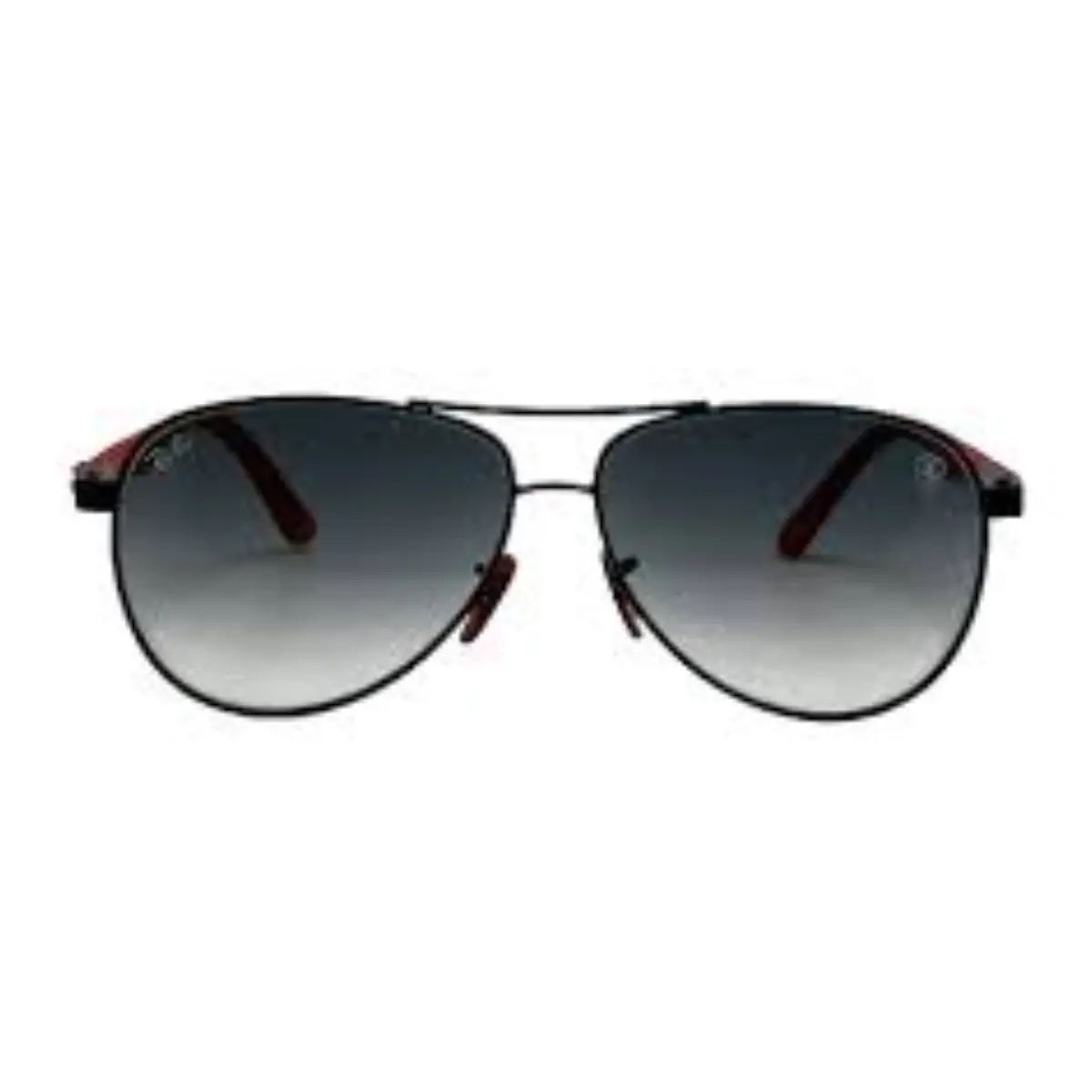 Las gafas Ray-Ban Ferrari Aviador Negro/Gris reflejan la esencia del lujo y la velocidad. Su diseño combina la silueta clásica de aviador con detalles exclusivos de la colección Ferrari, como los logos grabados y los acabados inspirados en el automovilismo italiano. La montura metálica negra y los lentes grises brindan un estilo potente, elegante y sofisticado.